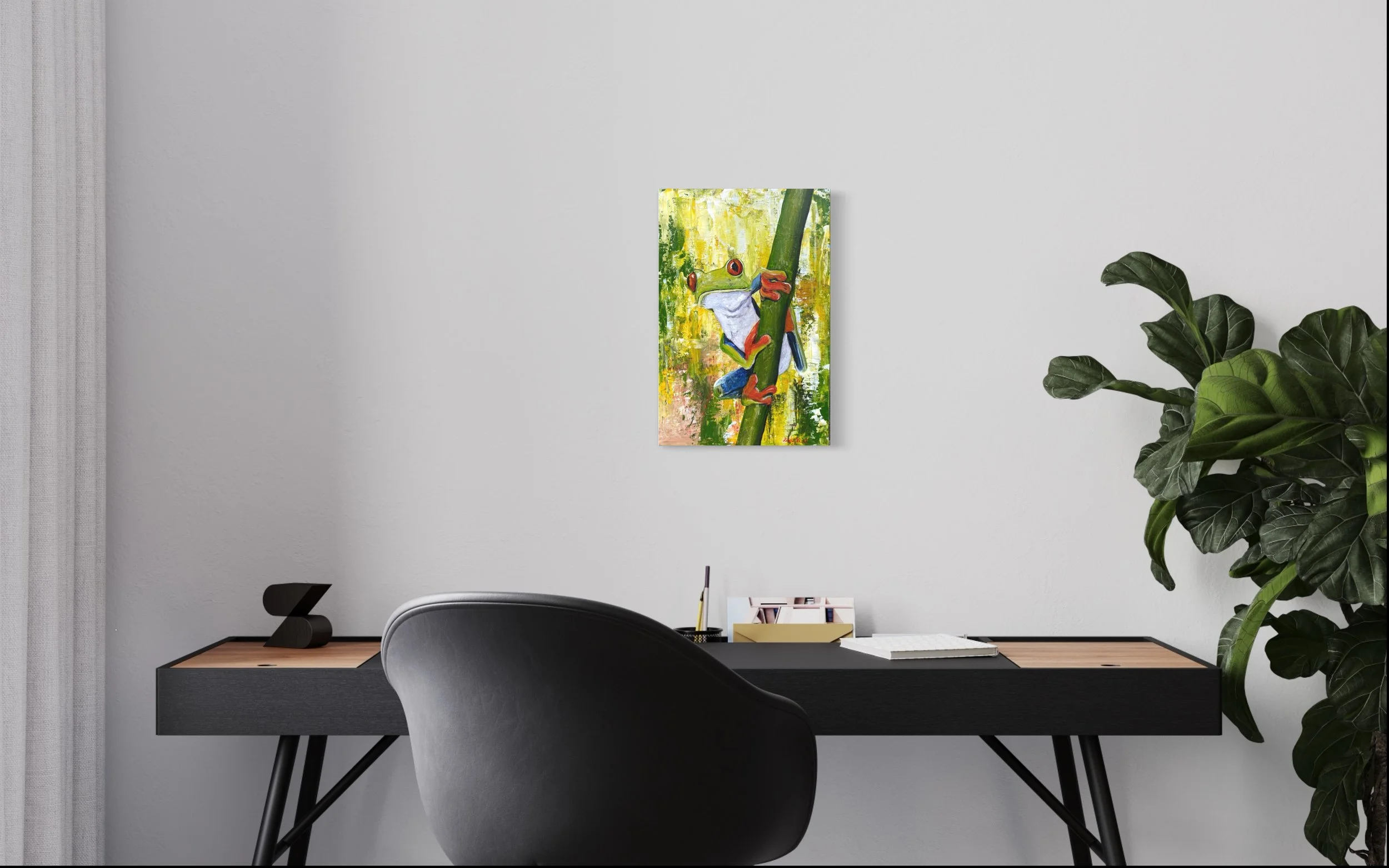 It measures 40cm x 50cm x 1.5cm. It’s acrylic on Canvas.